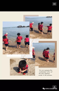 园内“海洋”主题教育开展之后,每个班级的主题都更换为海洋风。小朋友们来到海边,挑拣着自己喜欢的石头和小贝壳,想装饰漂亮的教室。