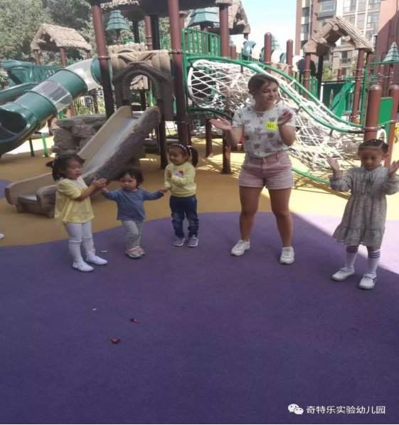 我们美丽的外教老师Ally在和小朋友一起玩耍。